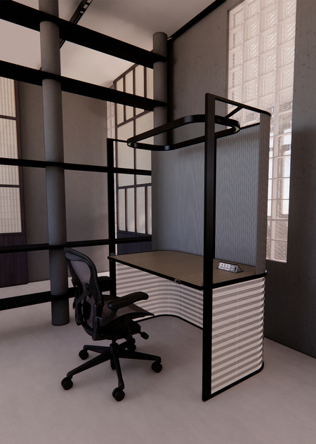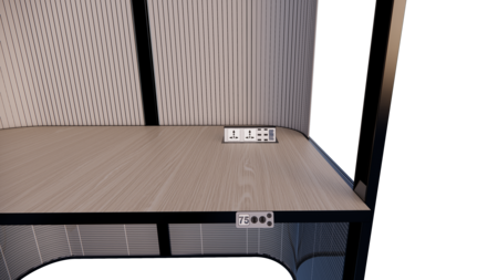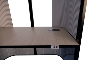 В конструкцию интегрирована динамическая подсветка, уменьшающая зрительное напряжение и создающая комфортные условия для длительной концентрации. Предусмотрен механизм, открывающий доступ к встроенным портам для зарядки и универсальным розеткам, что делает подключение оборудования удобным и аккуратным. Дополнительные шторки позволяют при необходимости изолировать рабочую зону, формируя индивидуальное пространство, повышающее уровень сосредоточенности и приватности.
