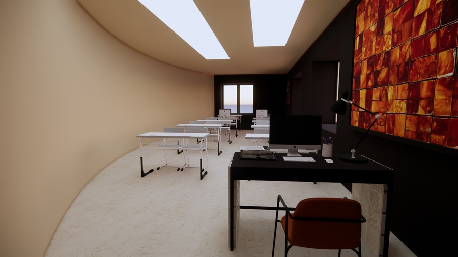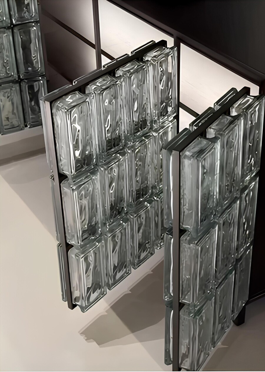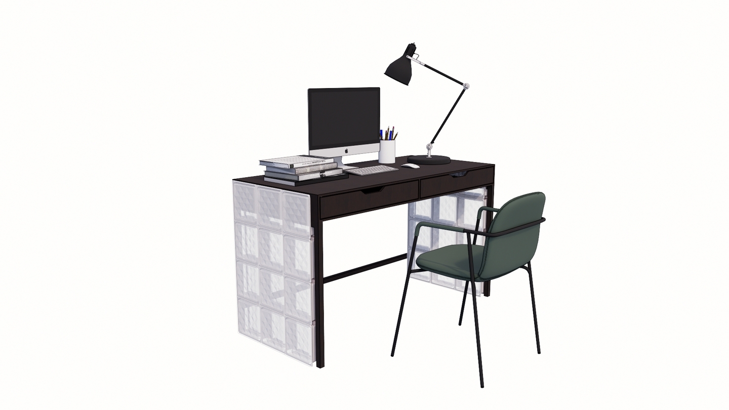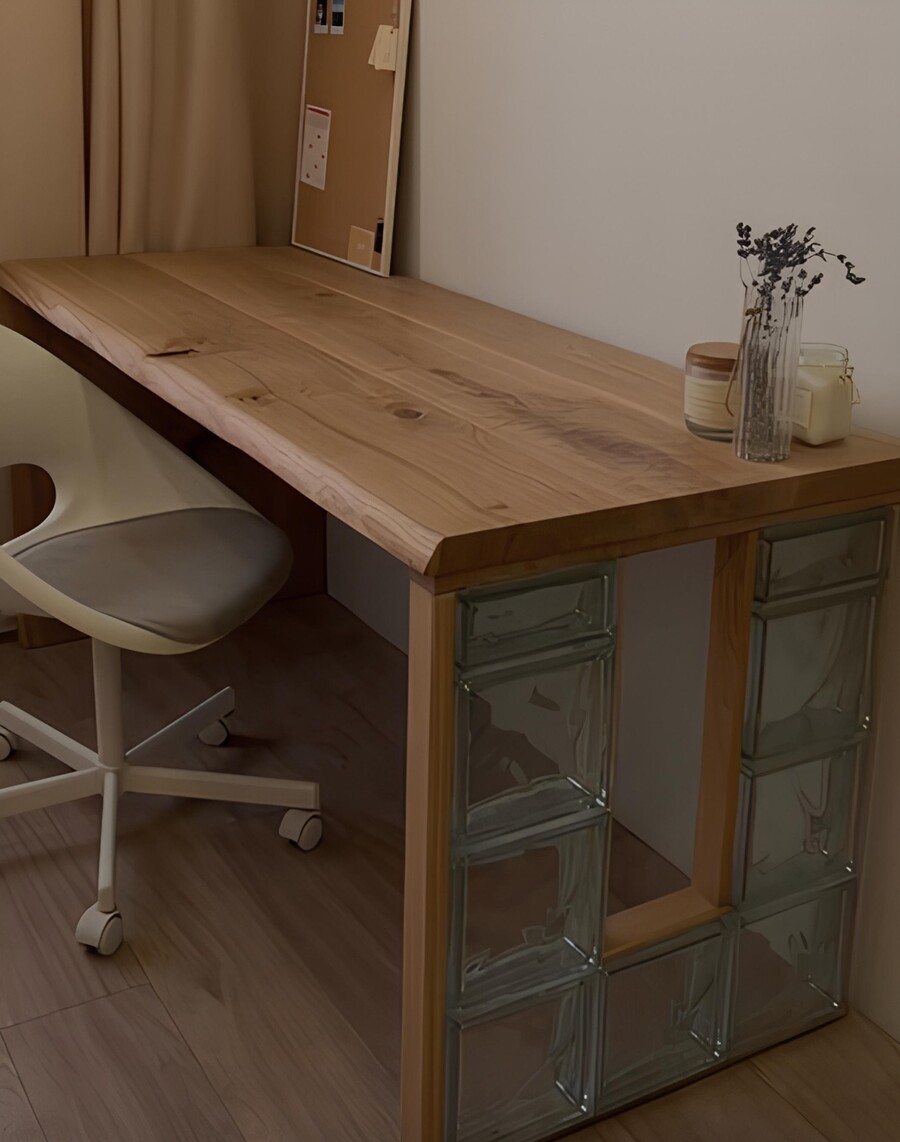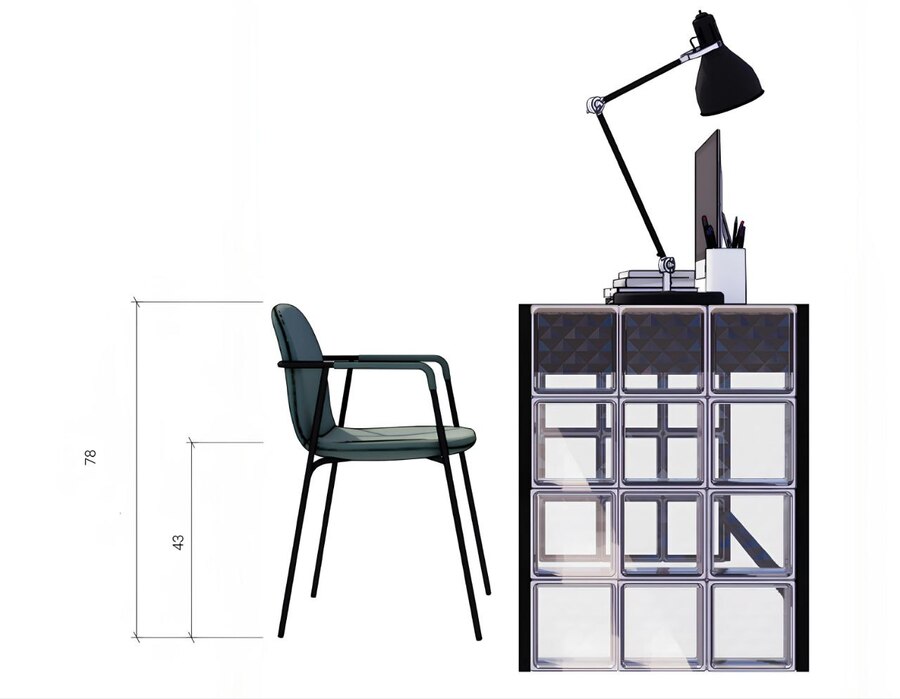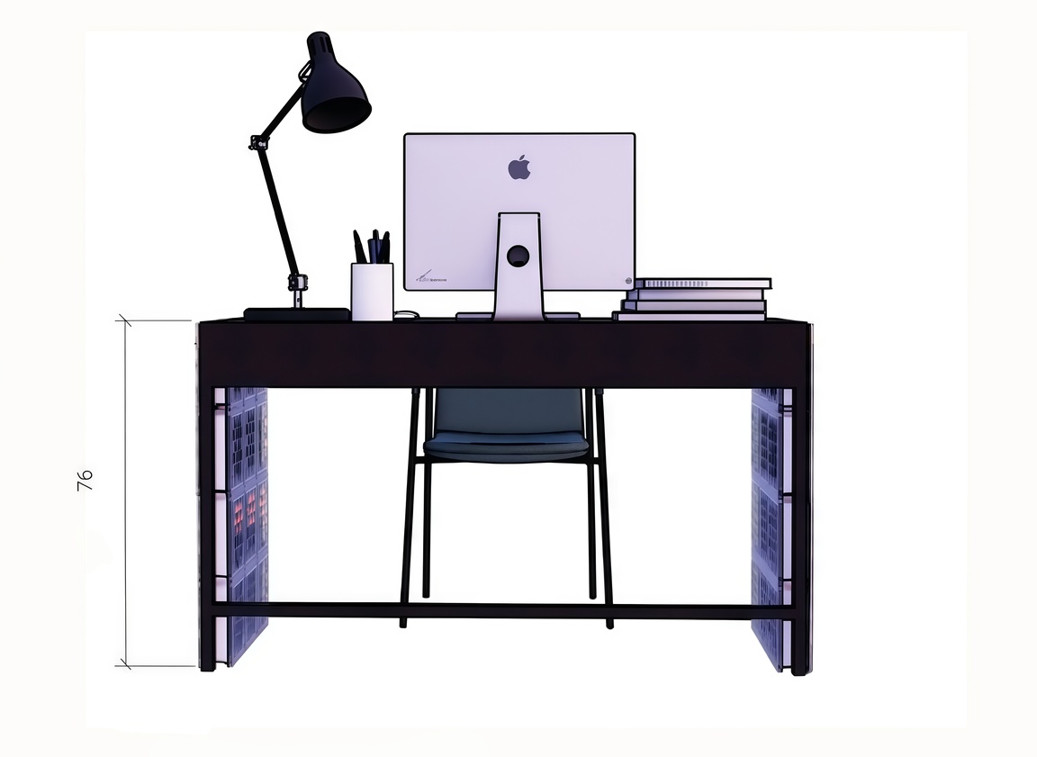 Кластер, созданный с использованием стеклоблоков, находит своё прямое продолжение в проекте рабочего места. Этот архитектурный элемент становится связующим звеном, органично интегрируя рабочее пространство в архитектурное решение кластера и формируя единую среду.