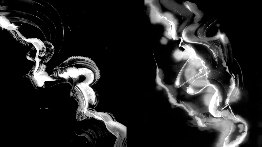 У меня не было определенной темы, которая бы объединяла две практики, но позже я провела самое долгое чаепитие сама с собой, параллельно рисуя. Изображая маленьких чайных духов, воду на чабани и посуду, я поняла, что один из важных элементов композиции — это пар. Во время наливания кипятка и во время пролива напитка он создает безумно красивые узоры, за которыми хочется наблюдать вечно. Он как начало и конец множества последовательных действий. И тогда я решила попробовать изобразить его.