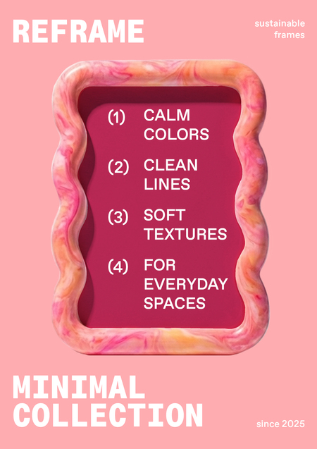 REFRAME fits naturally into modern living spaces. Neutral tones and organic plastic textures blend with wood, textiles, ceramics, and contemporary furniture. Whether it’s a photograph, a poster, or a favorite print, our frames help it find its place in your home.