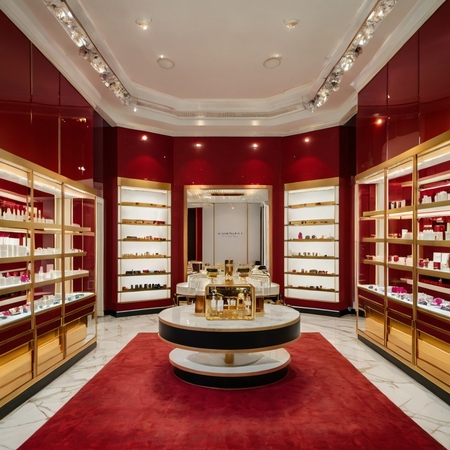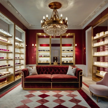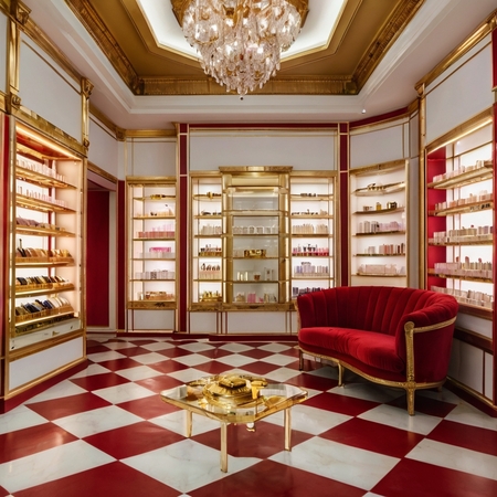 1. AI-generated flacon design: Leonardo Ai, Stock Photography preset, preset style: Stock Photo, prompt: Transparent minimalist rectangular perfume bottle with Red Moscow label with voluminous red and gold cap. Modified in Photoshop. Number of requests: 3. 2. AI-generated space options: Leonardo Ai, Stock Photography preset, preset style: Stock Photo, prompt: Perfume store space with red floor, red and white walls, gold shelves and a velvet large sofa. Number of requests: 5. 3. AI-generated advertising posters: Leonardo Ai, Leonardo Phoenix preset, preset style: Sketch (Color), prompt: Perfume advertising bright promo poster with diamonds + AI-generated flacon image. Number of requests: 2. 4. AI-generated perfume package: Leonardo Ai, Stock Photography preset, preset style: Stock Photo, prompt: Simple rectangular cardboard red box with gold letters in Russian style. Modified in Photoshop. Number of requests: 7. 5. AI-generated customised bag: Leonardo Ai, LifeLike Vision preset, preset style: Fashion, prompt: Small minimalistic rectangular red cardboard gift bag with gold woven handles. Modified in Photoshop. Number of requests: 1.