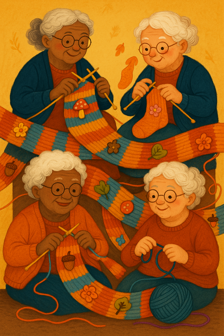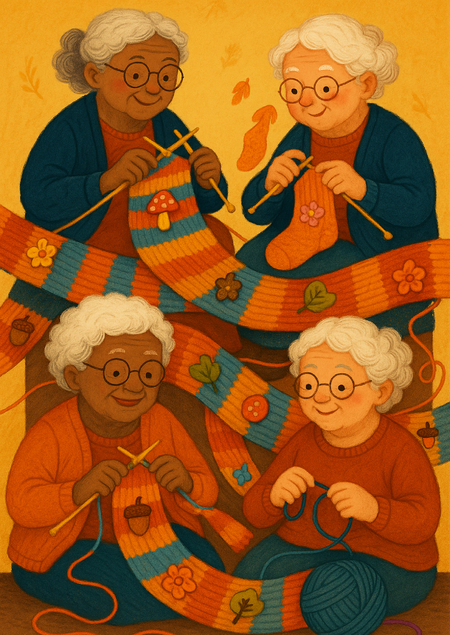 Игроки примерят на себя роль любящих бабушек. Им предстоит, искусно работая с узорами и цветом, создать заготовки одежды своим внукам перед началом холодов.
