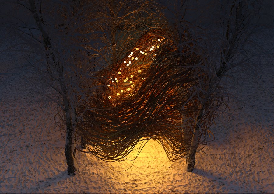 Световая инсталляция представляет из себя парящее в кронах деревьев гнездо, свитое из частично из света. Объект символизирует безопасное убежище, домашний очаг, оберегаемый и вознесенный над миром.