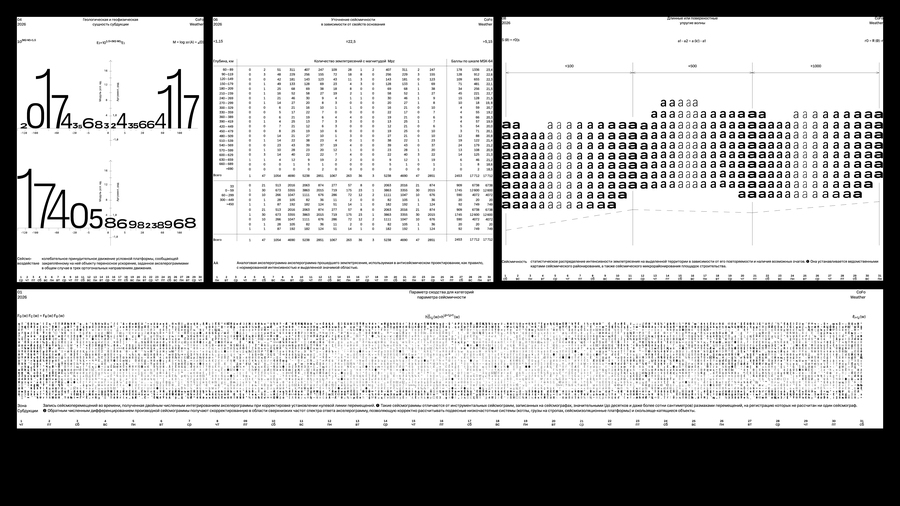 Сейсмический Календарь-specimen CoFo Weather. Календарь объединяет в себе дерзость и движение шрифта CoFo Weather, буйство природных аномалий и статичную математическую аналитику сейсмической активности.