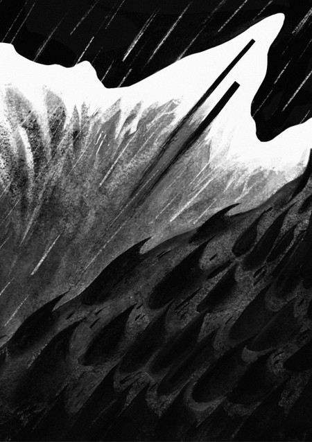 На первых этапах работы, когда у меня нет четкой идеи что я хочу нарисовать, чаще всего иду от абстрактных форм они могут быть линейными, пятновыми или совмещать и то, и другое. Также предпочитаю работать под музыку, но она чаще всего не влияет на то, что нарисовано. Мне захотелось чтобы в моем проекте музыка Twisted Sister осталась на листе, заложила основу для итоговой картинки, которая может стать обложкой альбома.