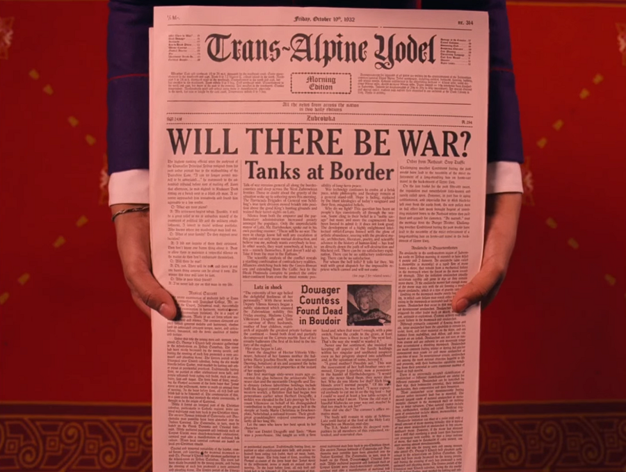 «Отель „Гранд Будапешт“» — невероятно визуально насыщенный и композиционно продуманный предмет кинематографа. Режиссер Уэс Андерсон, сознательно, действует внутри замкнутой вселенной, где каждый элемент иллюстрирует идею. Форма не просто украшает содержание, но предстает им. Андерсон отказывается от реальности и создает изящную модель, вымышленную, симметричную и стилизованную.