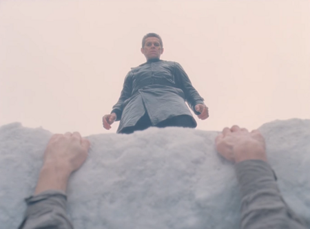 Или же автор просто использует свет, чтобы выделить центр кадра, направленный луч, указывающий на кнопку или кусочек светлого снега, среди темных и неприветливых зданий. Мы видим как здания обрамляют правый и левый край, но наш взгляд перемещается в центр. Нами управляет это метафорического обрамление, которое заставлять смотреть ровно в центр кадра.
