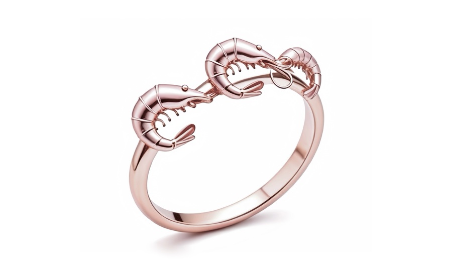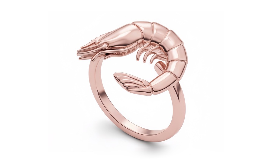 Размеры: — Размер кольца: 16-18 (регулируемый) — Длина креветки: 18-20 мм — Ширина шинки: 3-3,5 мм Технология печати: SLM (Selective Laser Melting) Материал: Алюминиевый порошок AlSi10Mg Постобработка: Пескоструйная обработка + анодирование в розовый цвет Особенности: Спиральная форма креветки, обвивающая палец-основу кольца