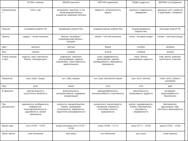 В китайской философии мы можем рассмотреть концепцию У-син, которая включала в себя взаимосвязи между природными, телесными и эстетическими явлениями. У-син делилась на 5 элементов: дерево, огонь, земля, металл, вода. Каждому элементу соответствовали не только сезон, орган, эмоция, но и определенная тональность и цвет.