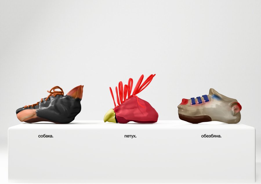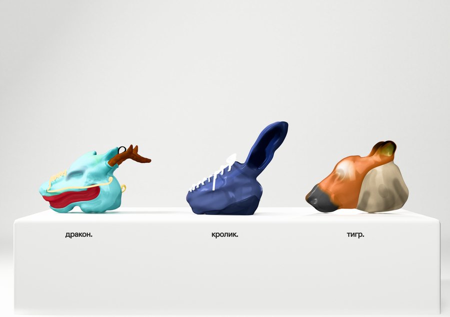 Коллекция из 12 елочных игрушек. идея проекта получилась случайно: делая игрушки на тему китайского года, я обнаружил, что головы многих животных похожи на кеды, кроссовки и сникерсы. раньше люди вешали на елку сапожки, но теперь есть кое-что получше.