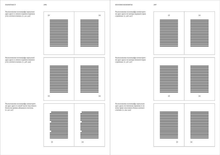 Динамические колонцифры, которые меняют ось расположения в зависимости от части внутри каждой главы: текстовой, с примерами и изображениями.