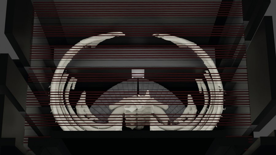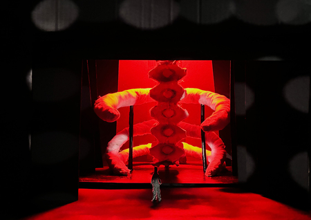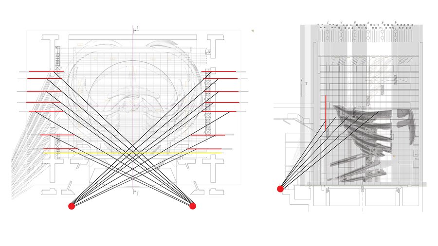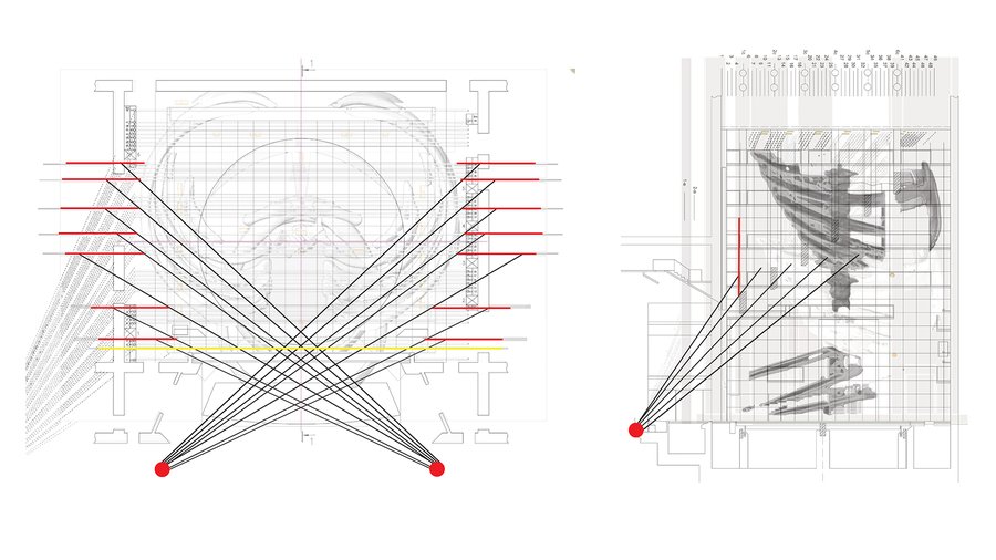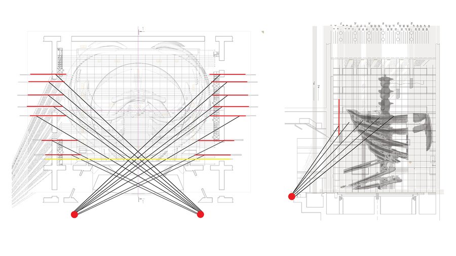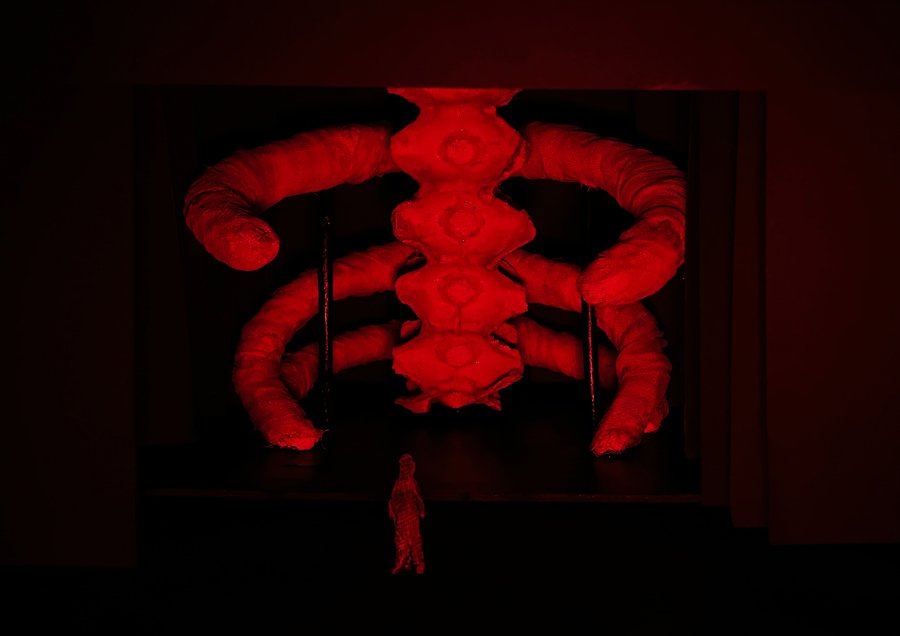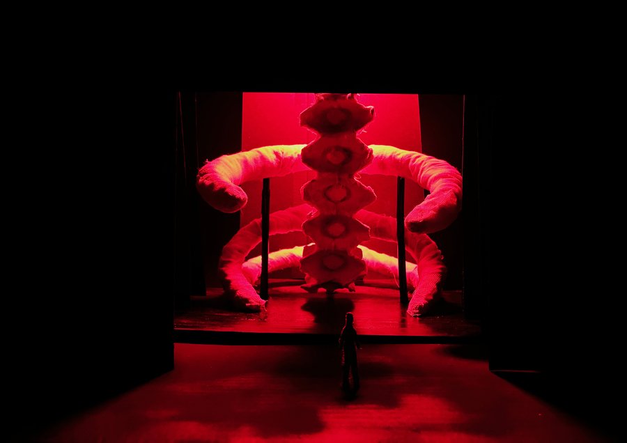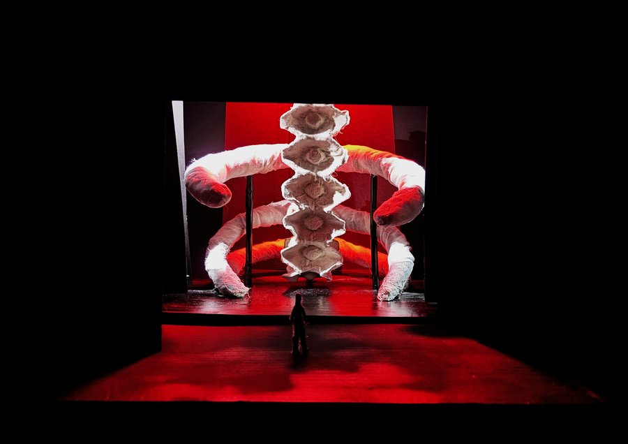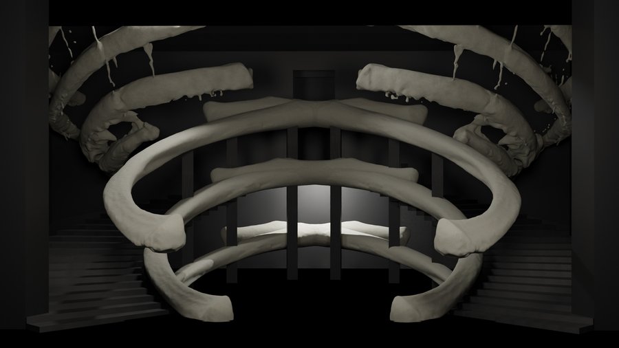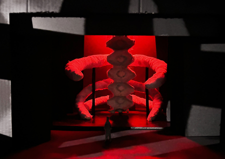 В разработке сценографии по трагедии «Орестея» Эсхила было принято решение включить элементы перформативности и пластической игры, поэтому конструкции декораций остаются устойчивыми и почти неизменными на протяжении всего спектакля. Смена крупных декораций происходит всего три раза. Каждый акт, каждая трагедия приводит к новой смене сценического пространства. Таким образом, создается динамика, которая концептуально отсылает к трем местам действия в сюжете трагедии: дворец, могила и храм.
