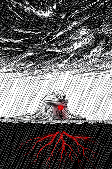 Однажды вечером недосчитался Светозар козленка, и на поиски отправился. Забрел Светозар высоко в горы, глядит — погода портится, тучи набегают, ветер крепчает. Вот-вот ливень хлынет. Стал Светозар искать укрытие — где от дождя спрятаться, да вокруг ни куста, ни камушка. Видит — под пригорком цветок растет и от ветра до самой земли клонится, того гляди ветер его с корнем вырвет. Жако стало Светозару цветок, склонился он над ним, прикрыл собою, да плащом с головой укрылся. Двум смертям не бывать, а одной не миновать. Тут и буря началась. Зверем ветер выл, да хлестал ливнем. Думал Светозар что тут и встретит свой последний час. И стал он разговаривать с цветком: «Ты не бойся, цветик, скоро все пройдет. Ведь не бывает так, чтобы все время тьма. Каждое утро на небо Солнышко всходит, а за ним и свет и тепло. Это в одиночку страшно да трудно, а когда вдвоем — все можно пережить.».