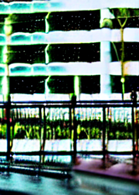 Мир глазами персонажа размыт и предельно контрастен — очертания среды едва угадываются в ядовито-желтых вспышках и угольно-черных провалах, создавая тревожный образ искаженной реальности. К сожалению, в нейросетях сложно полноценно передать эту концепцию размытого восприятия, где узнаваемые формы тонут в агрессивном цветовом контрасте