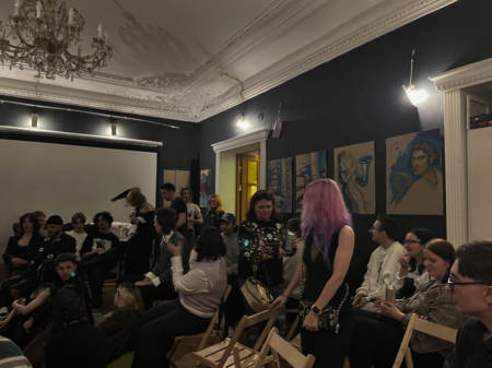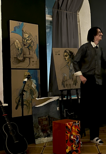 В своих холстах я хотела передать атмосферу одного творческого вечера — от прихода первых гостей до его завершения. Проект для меня—это симбиоз музыки и живописи, иллюстрирующий дух андеграудной жизни города