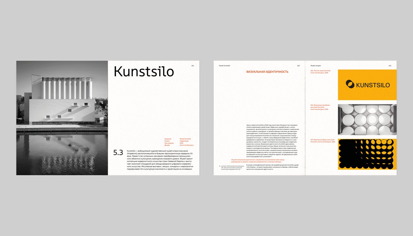 Данное исследование анализирует крупнейшие музеи и арт-центры мира, а также изучает то, как они позиционируют себя на культурном рынке. В рамках работы рассматривается история создания их айдентики и эволюция визуального стиля на протяжении времени. Кроме этого, исследование рассматривает влияние глобализации и цифровизации на позиционирование музеев, а также выявляет общие тенденции в их визуальном языке. В последней главе «Музей сегодня» анализируется актуальная практика формирования айдентики, подчеркивается роль визуального языка в коммуникации музеев и его значение для современного арт-рынка.