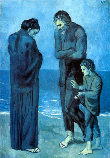 Так «голубой период» Пикассо, работы с абсолютно понятными формами и знакомыми сюжета, окрашены в полноценно синий и голубой, что заставляет зрителя прислушиваться к своим размышлениям и взглянуть на привычное, совершенно по-новому. Именно цвет в таких работах служит началом для душевной, глубокой рефлексии, о жизни, времени, персонажах полотен, вечности и конечно самом себе.