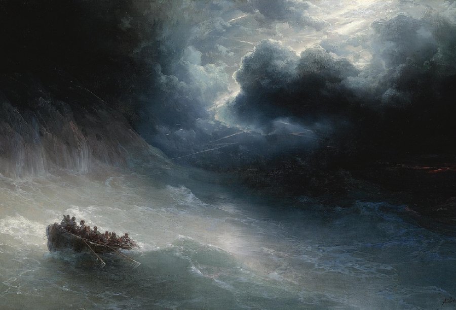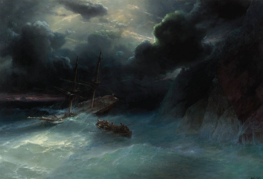 Испытать возвышенное легче всего глядя на полотна сдерживающее буйство природы. Так например, Айвазовский, используя весь спектр синего цвета, создает грандиозные возвышенные сюжеты. Водные просторы не просто нарисованы, они ощущаются максимально реально, окутывая своими необъятными массивами. Используя контрастные цвета, мы отчетливо можем наблюдать набегающие буйные волны и буквально «слышать» волнение моря. Мы чувствуем всю трагичность изображенного сюжета, без цвета добиться столь яркого ощущения возвышенного было бы невозможно.