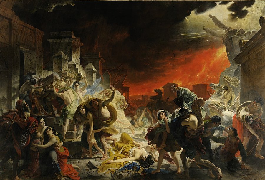 Яркие буйные цвета, красный, оранжевый, желтый, творцы часто используют для создания чувства опасности и тревоги. Полотно «Последний день Помпеи», тому пример. Автор использует красный, не только как иллюстрацию разлившейся лавы, но как чувство самой ужасающей трагедии, что погружает зрителя в возвышенное от величины неизбежности.