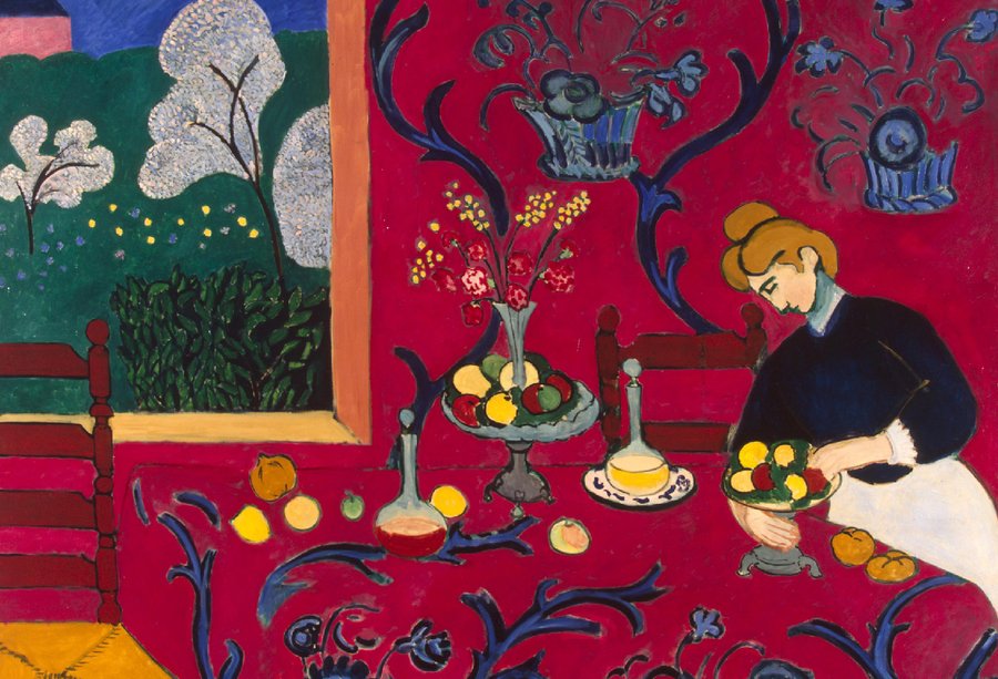 Так мы плавно устремляемся к работам где цвет становится доминантой, задавая настроение картины. Там цвет уже даже не просто носитель символов, а основное чувственное состояние полотна. Голубой цвет, поглотивший работы Пикассо, говорит о непробудной тоске. Персонажи на картинах отходят на второй план, тоня в вечной синеве. Следует лишь взглянуть на цвет, и зритель понимает, перед ним оплот тяжелой печали, что не отражается, в такой полноте, в подобранных Пикассо позах. А красный в «Красной комнате» Матисса, это пространство. Под пеленой цвета теряются мебель, предметы быта, что полностью отдает картину во власть красного цвета.