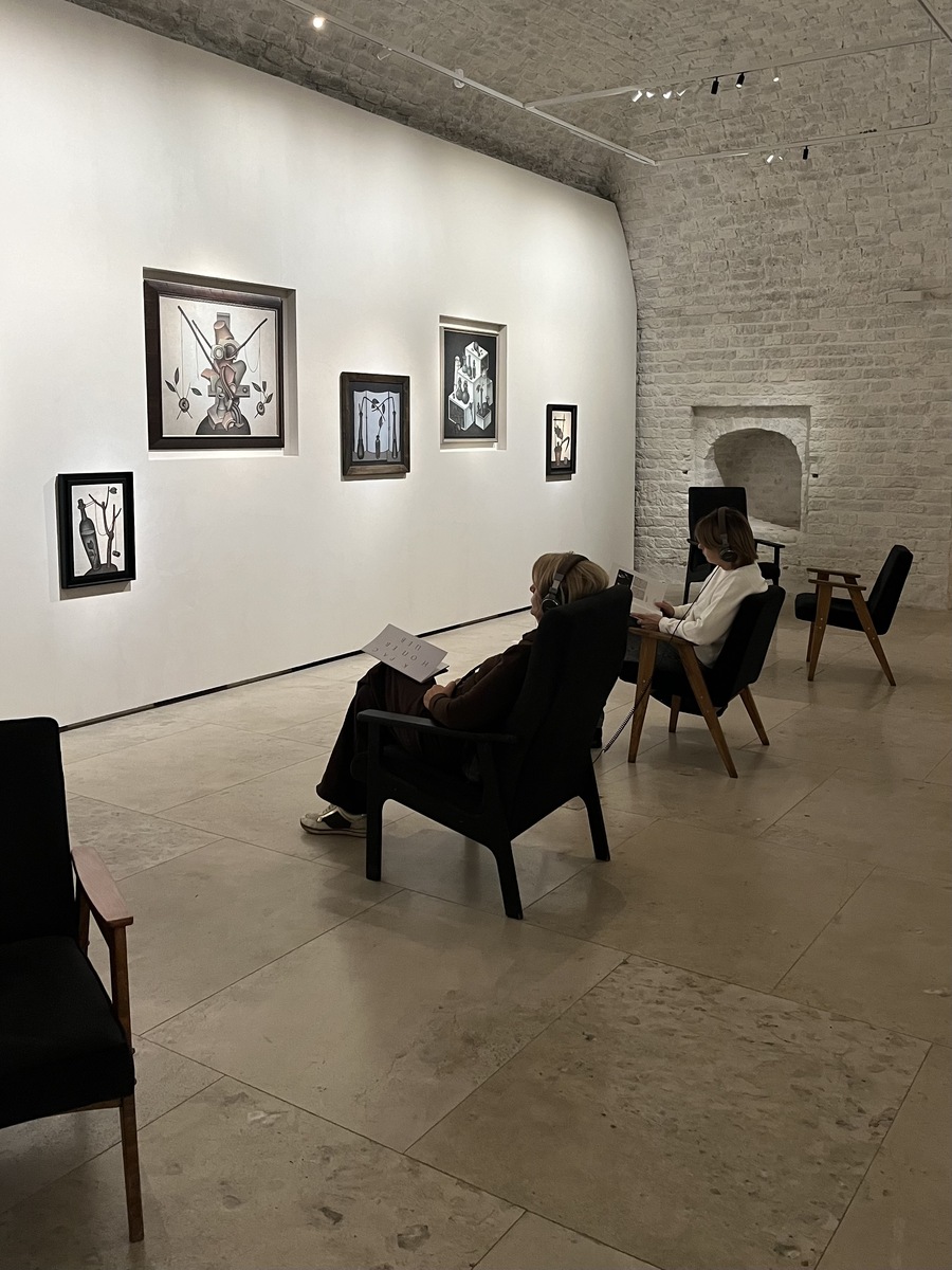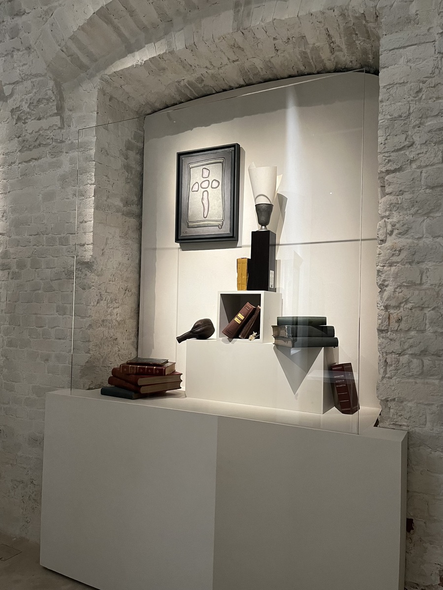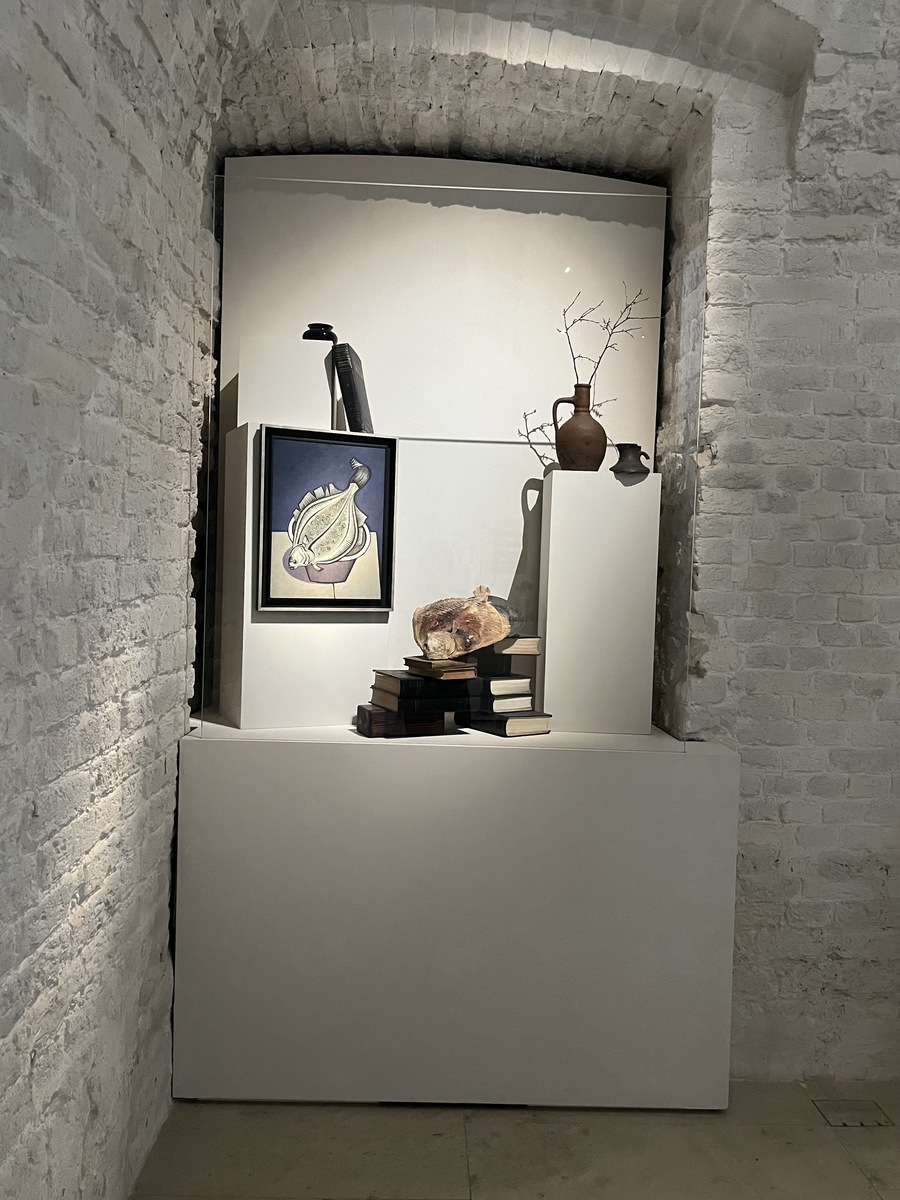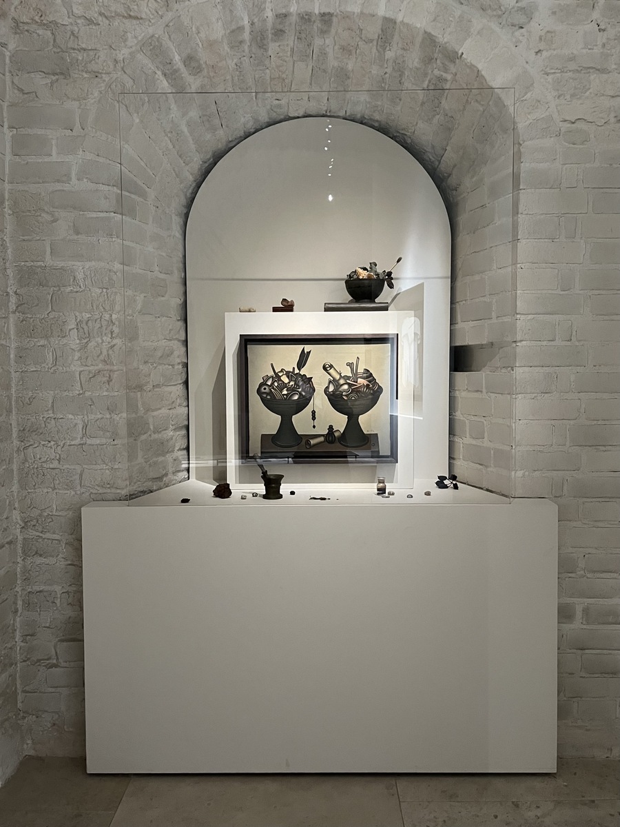 Сама выставка становится мастерской художника, его келью. Сводчатые арки исторического здания музея как бы поддаются идее куратора и становятся началом архитектуры выставки.