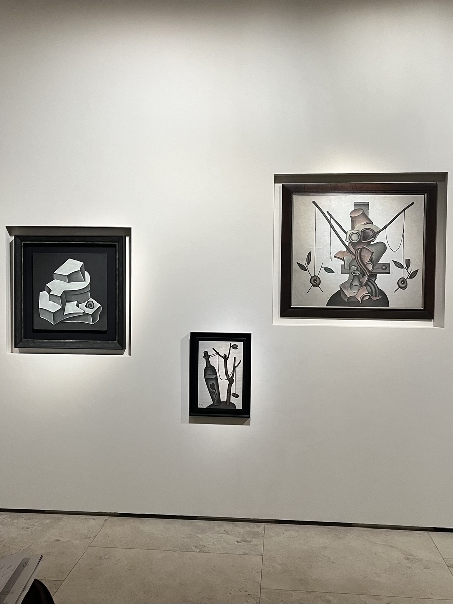 Световое решение оказалось одним из сильных аспектов выставки. Использовались трековые светильники, обеспечивающие мягкое и точное освещение каждой картины.