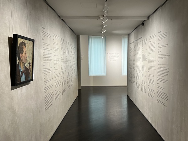 Пространство выставки организовано в виде линейного повествования, где картины сопровождаются фрагментами писем, заметок и высказываний Осмеркина о живописи и обучении. Эти тексты становятся частью визуального языка экспозиции — они вплетаются в пространство, создавая ощущение живого диалога между художником и зрителем.