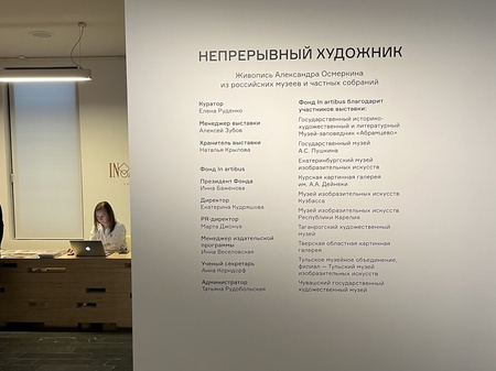 «Непрерывный художник. Живопись Александра Осмеркина» — проект Фонда In Artibus (Москва, Пречистенская набережная). IN ARTIBUS FOUNDATION — некоммерческая организация, созданная с целью изучения и популяризации классического и современного искусства. Фонд был создан по инициативе Инны Баженовой — коллекционера, мецената, участника и инициатора культурных проектов. В экспозиции собраны около 30 произведений художника из музеев и частных коллекций, особое внимание уделено позднему периоду его творчества — 1940-1950-м годам.