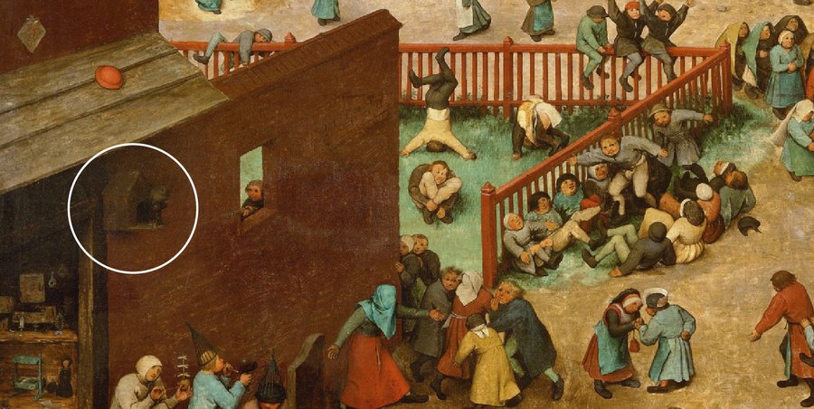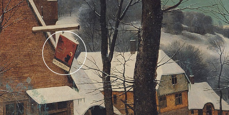 Также любопытные примеры вывесок обнаружил на картинах Питера Брейгеля Старшего на которых запечатлены вывески Европы 16 века.