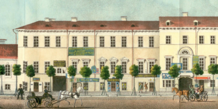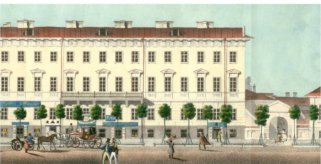 Панорама Невского проспекта. Правая, теневая сторона Невского проспекта. Два фрагмента. 1830 г. Литография раскрашенная. Иванов И. Источник изображения: https://artchive.ru
