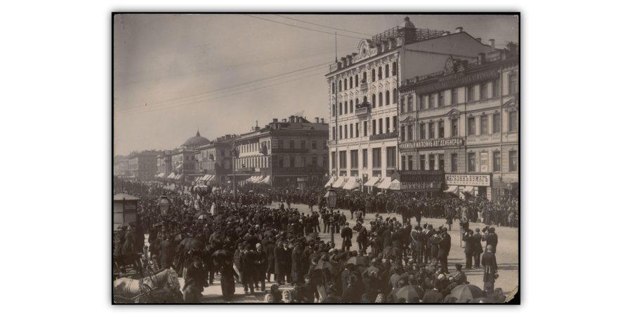 Демонстрация в поддержку Учредительного собрания на Невском проспекте 1917 года. Санкт-Петербург. Источник фотографии: https://pastvu.com