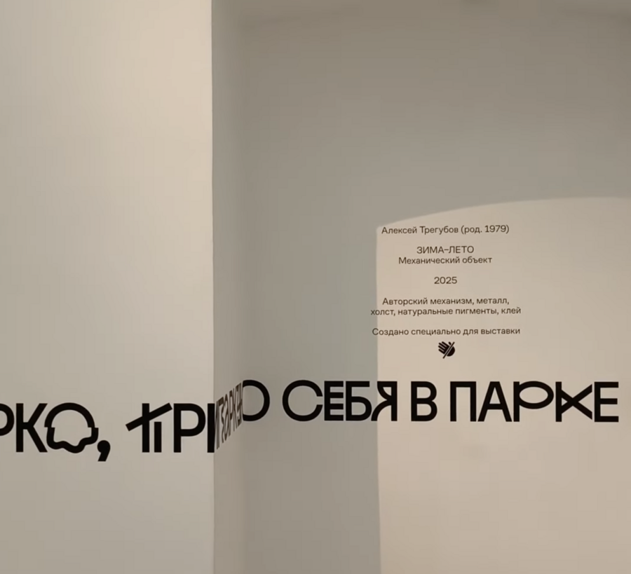 Этикетаж выполнен минималистично: текстовые карточки лаконичны, язык ясен и нейтрален, часто присутствует объяснение символики, но без прямых интерпретаций. Это создаёт доверие к восприятию зрителя: он не потребляет информацию, а ищет смысл, «идёт» вместе с выставкой.
